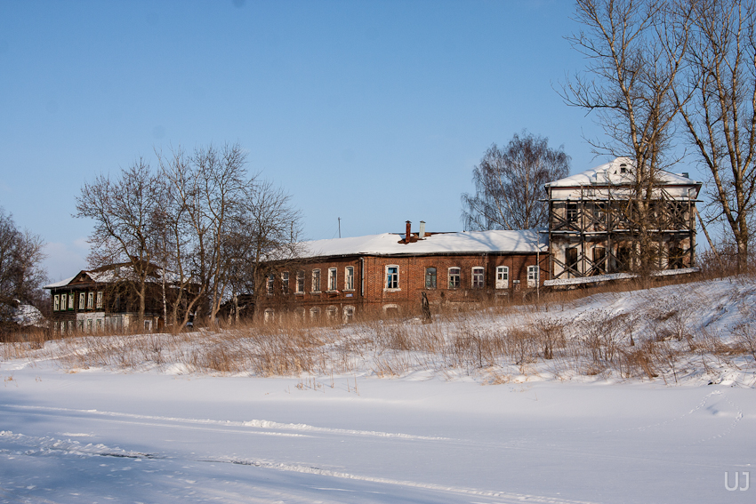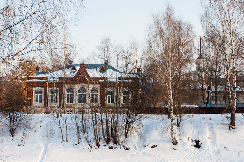 Вдоль берега расположились старинные домики. Эти - рядом с центральной "Пролетарской" площадью.